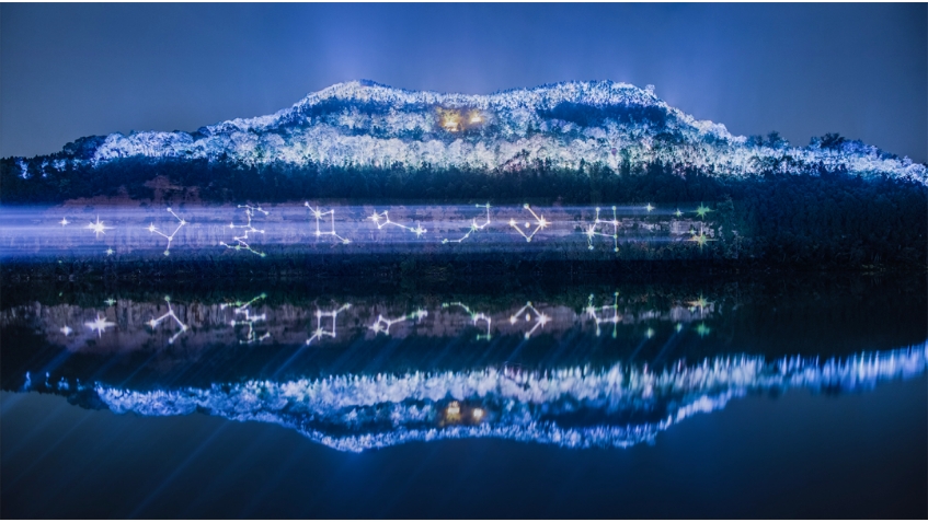 俯仰天地,乐山乐水,山川之美,古来共谈。信达在其余山脉以内透投光方式进行氛围烘托,辅以智慧城市控制系统调控展现山水画中的勾、皴、擦、染,犹如苍劲有力的笔触挥洒于山川之间,远看大气回肠,近看余韵悠长。