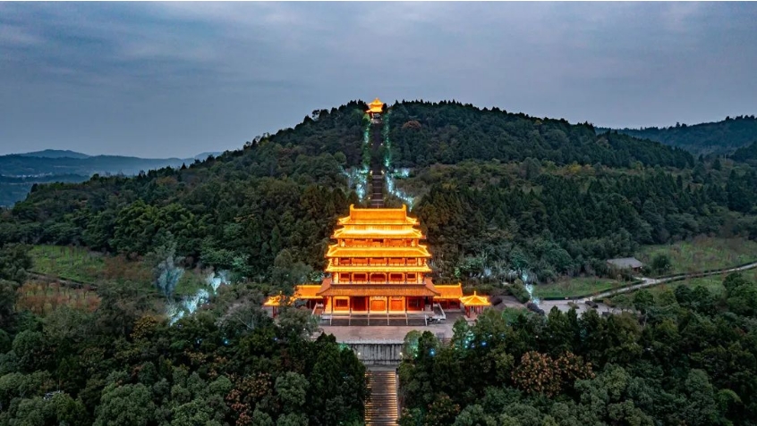 作为阆中城南环山最雄伟壮丽的人文景观,信达对魁星楼建筑主体进行照明改造,山体与塔虚实融合,融光入境,烘托出水墨韵染的意境,用色彩光源,于鳌山之巅叙述阆中故事,似神来之笔!