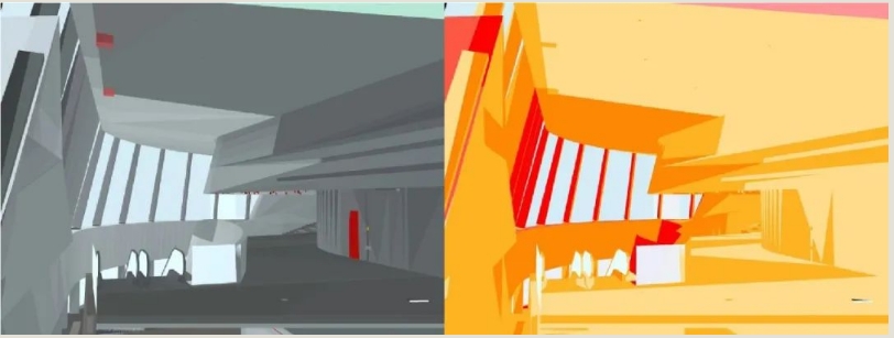 How to utilize the reflected indirect light from the façade and roof to make the space illuminated to the desired level? How to make the building bright enough for the “eyes” when viewed from the outside while meeting the appropriate level of illumination for the interior? Here, we need to balance several relationships. The façade and roof of the space, and the openwork totem pattern of the large hanging rings in the air. Where is the brightest spot in the space? The façade or the roof? Which brightness level should the openwork totem motifs of the hanging rings be at?
