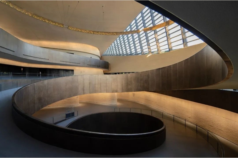 人们在建筑中、空间中透过文物密码,探寻曾经的奥秘。着眼室内光环境:创造光动线、创造神秘感;从室外看建筑:内透光使“眼睛”干净、清透的亮起来。
