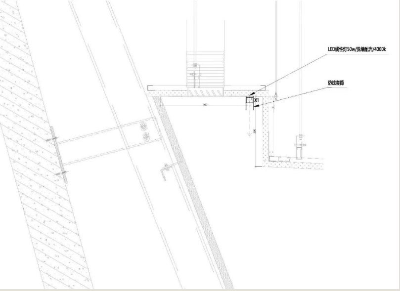 The façade is very varied, with meandering horizontal changes not only in plan, but also sloping vertically. Therefore, we chose the chain type linear wall washer, the purpose of which is to hope that the light and the illuminated surface of the most perfect fit. However, this type of luminaire also brings us a huge workload for future dimming, with every 100mm of luminaire being the length of a flexible, angle-adjustable unit. Here we would like to thank CCAA for their support of our work, they have put in the hardest labor.