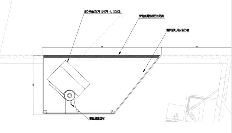 节点中灯槽的边框角度我们经过了很多轮的灯光实验,最后确定为倾斜130度角。这样会得到最好的出光角度,同时也不会在天花形成强烈的明暗对比。为了将灯具更好的隐藏,我们给每个灯槽安装了格栅盖板。