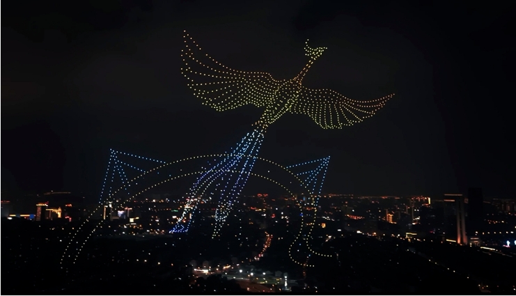 公司的理念是专注于城市照明和建筑艺术的结合,在本次东盟博览会中,无人机的表演中有何体现?